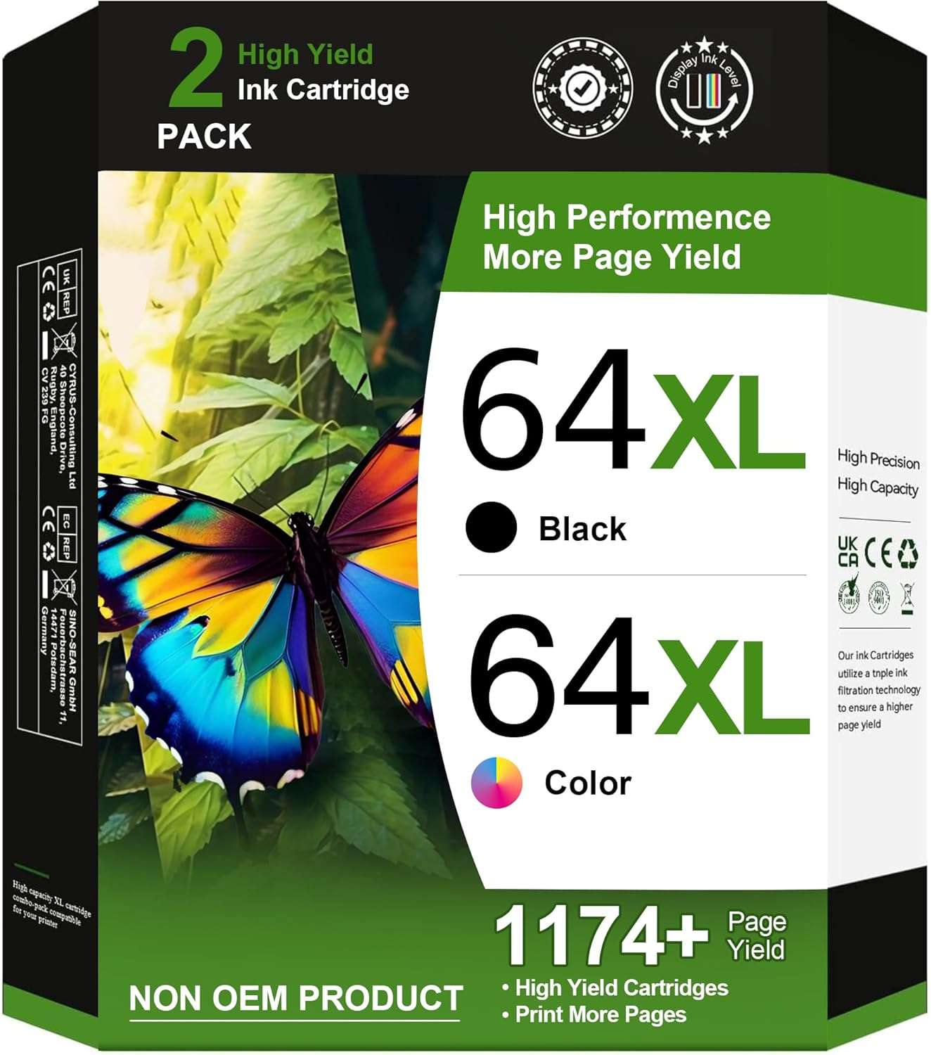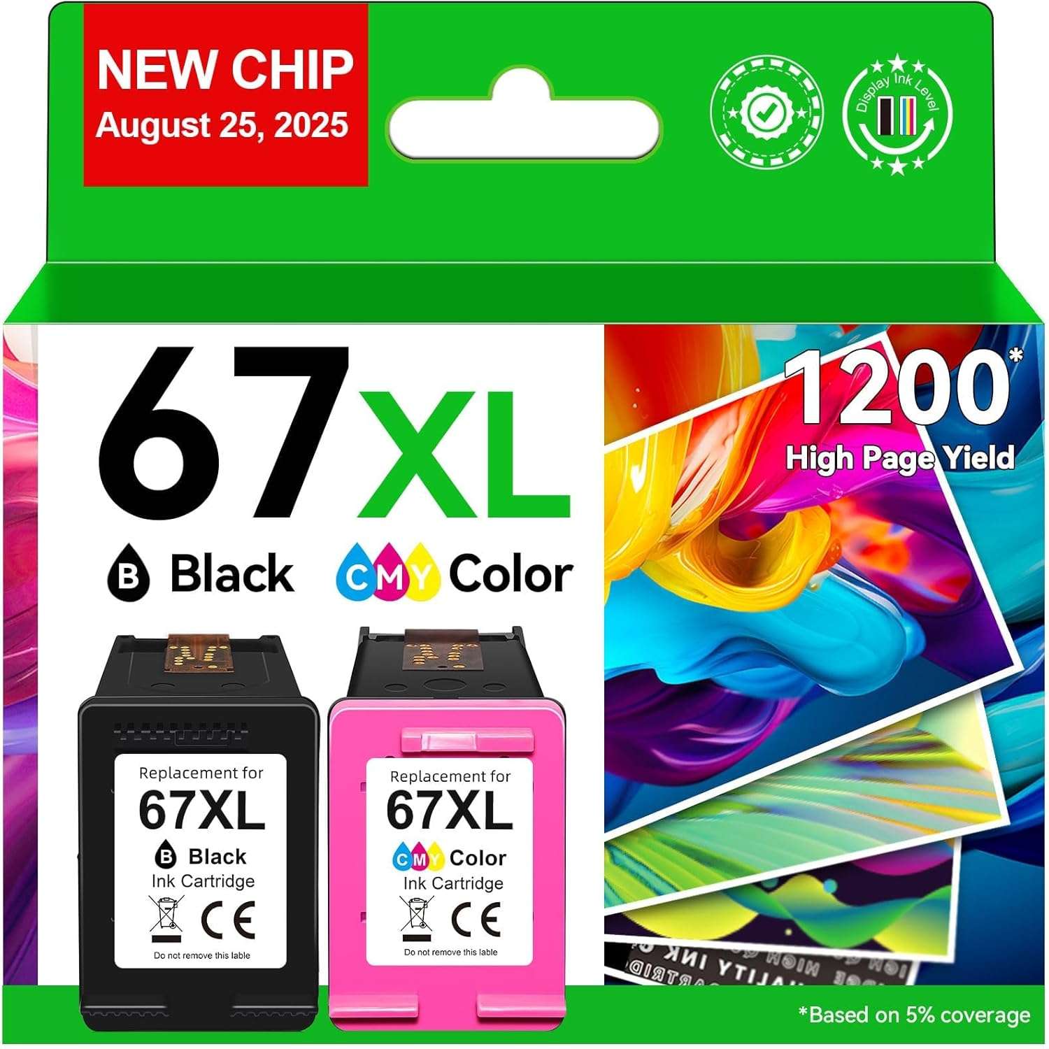 Pitooler 67XL Ink Cartridges Compatible for HP Ink 67 Black/Color Combo