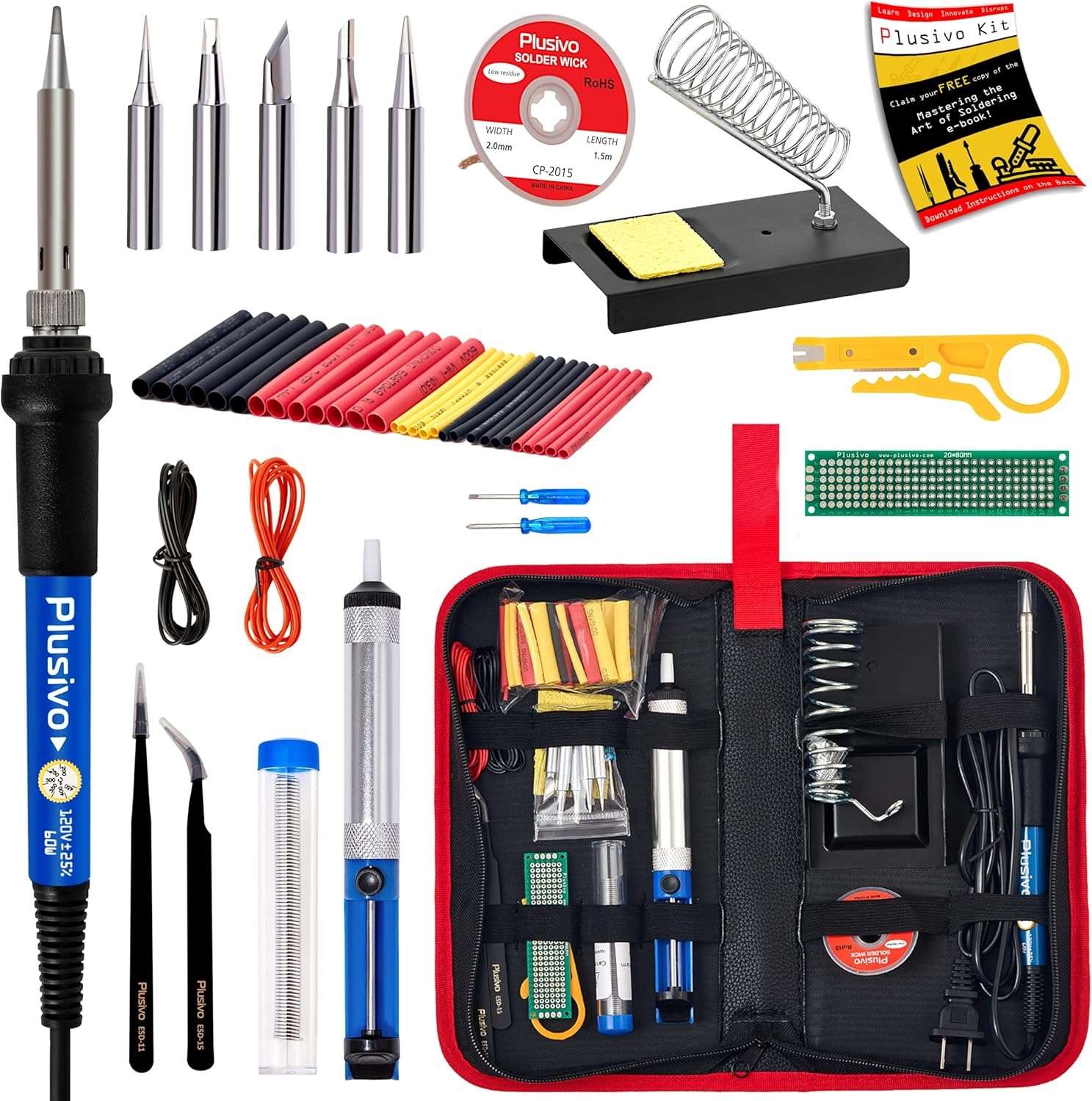 Plusivo Soldering Iron Kit, 60W Soldering Iron, 5 Soldering Iron Tips