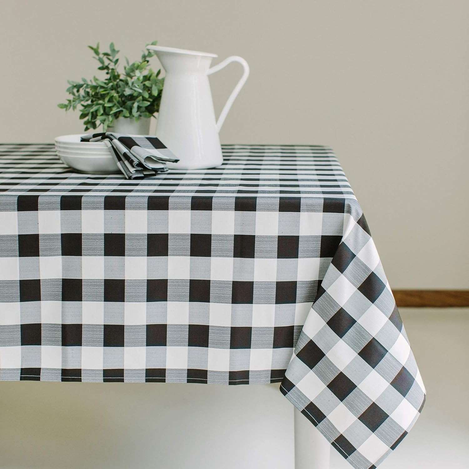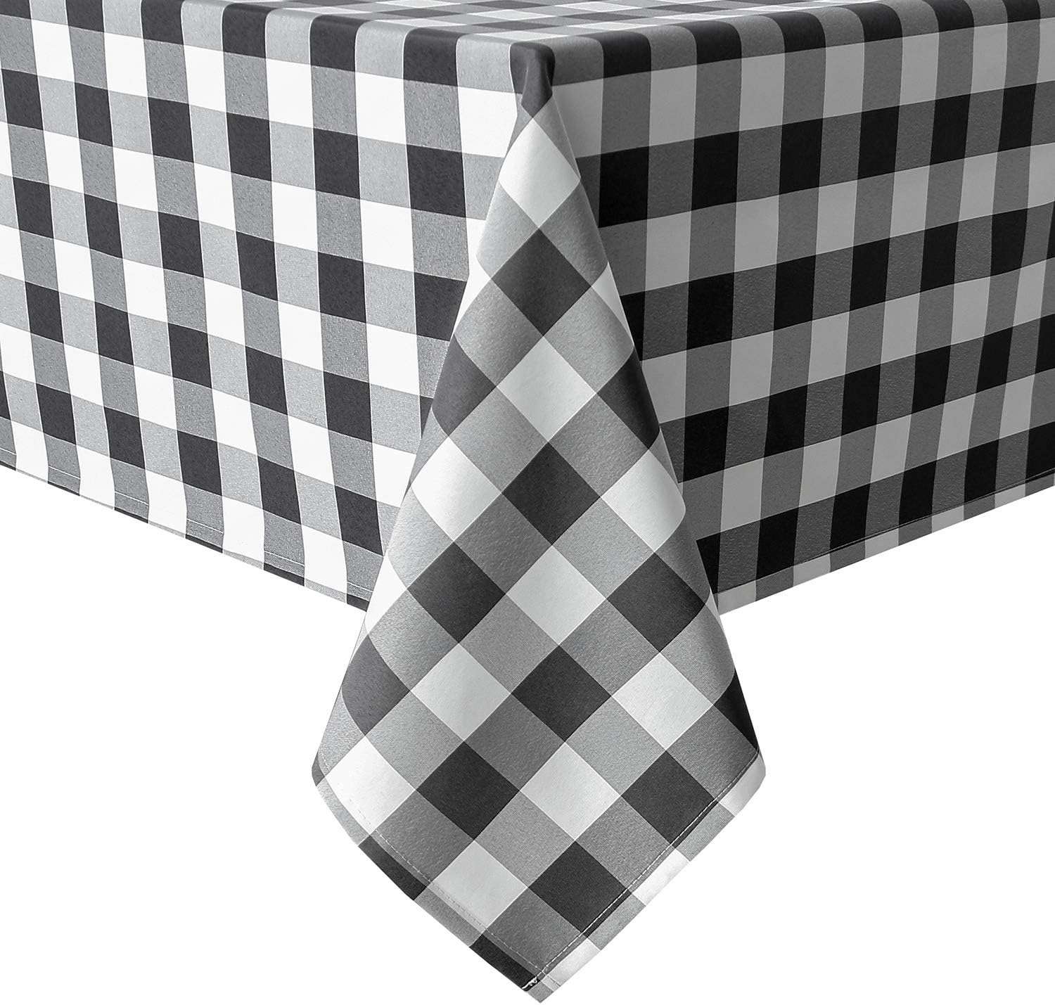 Material & Size: Durable polyester, 60×120 inch rectangular.Design & Finish: Classic black and white plaid.