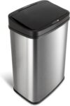 Touchless operation with automatic lid that opens with a motion sensor for hands-free use.